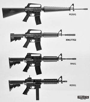 A compatibility kit that allows you to create either the XM177E2 or model 653 by selecting the barrel parts. M16A1 compliant receiver surroundings, older hand guard slimmer than M4, characteristic muzzle, etc. are reproduced as much as possible. Please enjoy the difference of each model as a collection of M16 series.