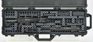 New developments for the Little Armory rifle case! The conventional urethane insert, which required cutting to fit the stored gun, has been replaced with block-shaped divider parts.