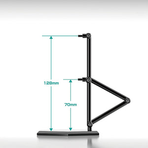 Presenting a set of 3 simple and affordable! A set of three black display stands. With a space-saving hexagonal base, These stands feature a plain design perfect for articulated figures, chibi figures, plastic models and more. The support arm is equipped with a 3mm pin for connecting to holes of corresponding size. Attachable clamp-style parts and extender parts for tights spaces are also included. The stands are made with transparent ABS resin. The base area is approximately 83mm x 95mm. Support arm can be adjusted from 70mm to 128mm in height.