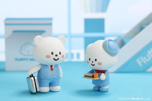 As we have the handsome leaders, Captain White Cloud and Captain Gray Cloud and lovely FLUFFY AIRLINES crew serving you with the warmest welcome. Need a travel buddy? Tourist Sunny is ready to take a sunbath with you! Who else is travelling with us? Nappy Bear is going to be your vacation photographer!