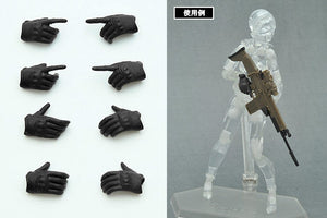 The Stealth Black color of hand parts for TOMYTEC's 1/12th scale "LittleArmory" series of weapons and figma action figures is being rereleased due to popular demand! The hands are modelled off tactical gloves with knuckle guards, which combined with the realistic guns in the LittleArmory series will leave your figma ready for anything! Each set includes four different hands for a total of eight pieces that allow the guns to be held, readied and carefully aimed! Use them together with the LittleArmory weapon sets for all sorts of new posing options! The gloves are ideal for use on figma action figures such as the previously released Little Armory figma figures and figma Nipako.